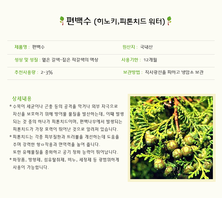 국내산 편백수원액 100ml 편백워터 히노키 피톤치드 워터