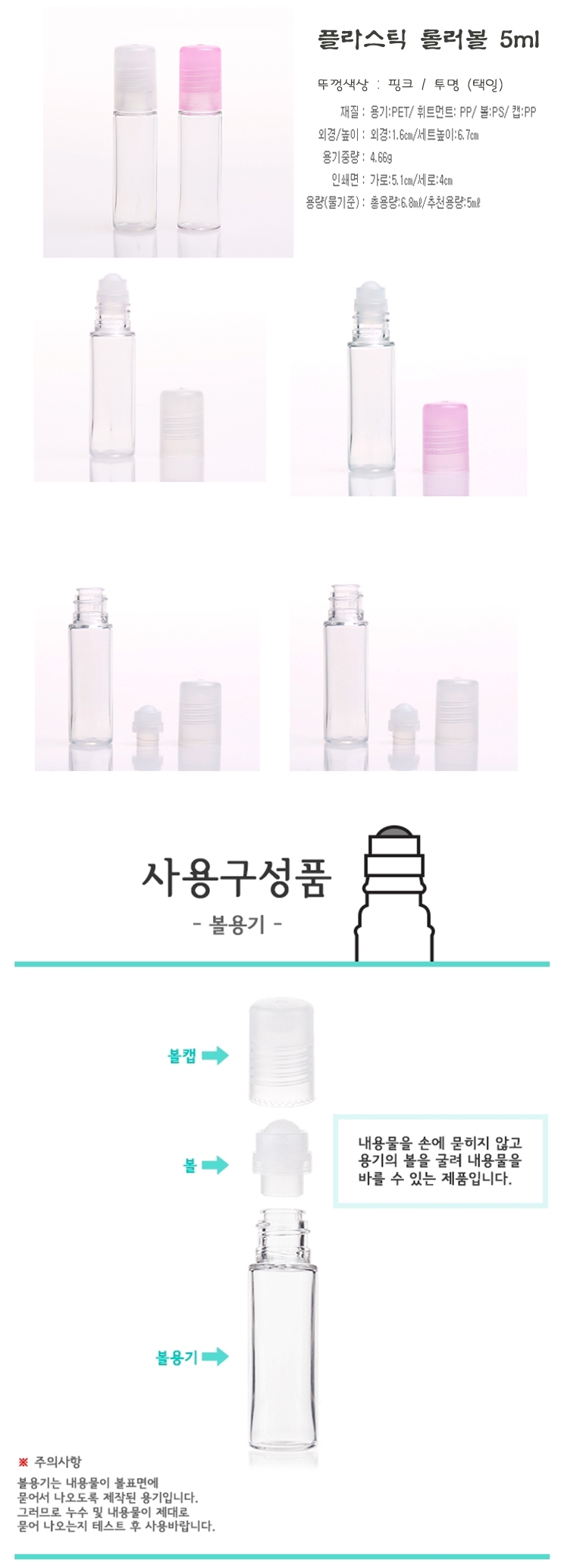 핑크뚜껑 플라스틱 볼용기 5ml 롤러볼 롤온용기