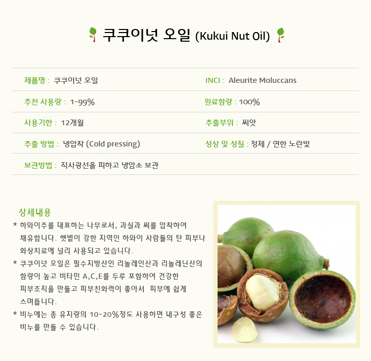 쿠쿠이넛오일 50ml (Kukui Nut Oil) - 정제 / 압착 [TWS-3304]