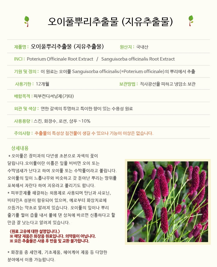 오이풀추출물 1L 지유추출물 지유초 오이풀뿌리추출물 Poterium Officinale Sanguisorba