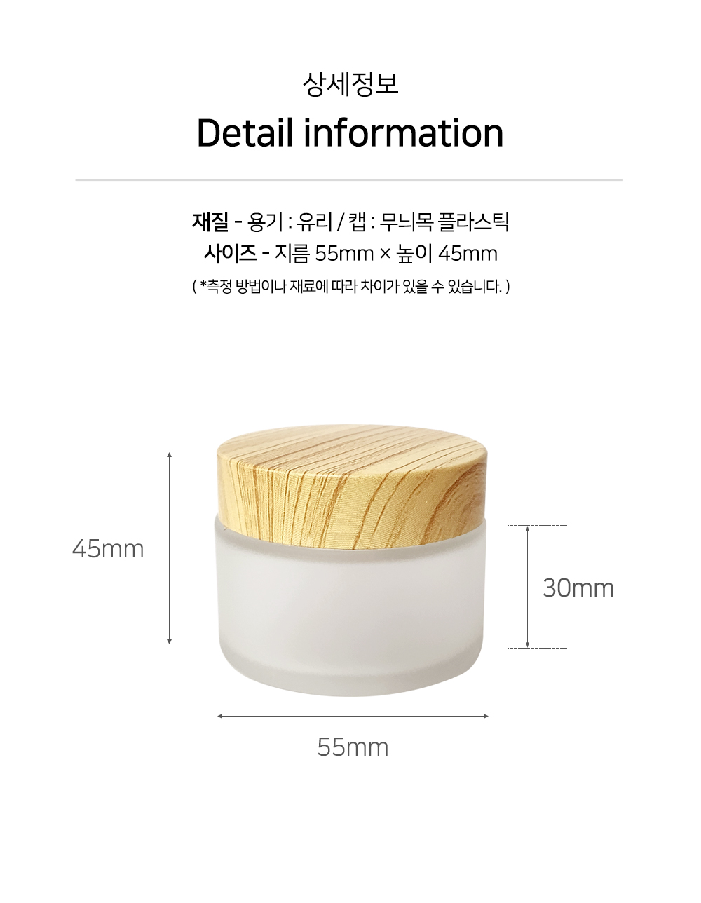 용기-반투명 유리, 뚜껑-나무무늬, 속캡-화이트