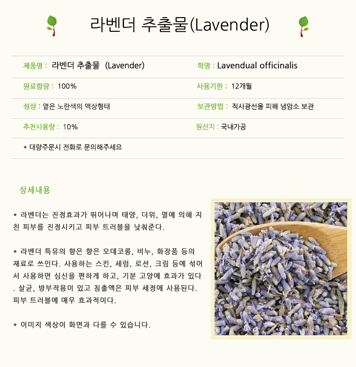 라벤더추출물 100ml 라벤더꽃추출물 Lavandula Angustifolia Lavender Flower Extract