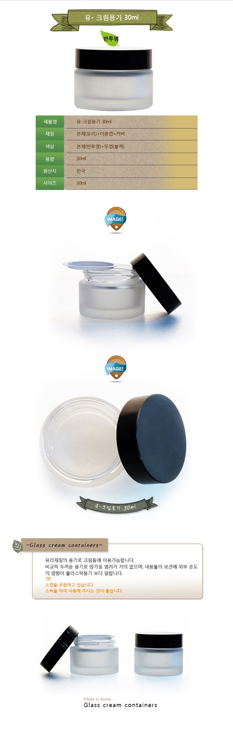 유리 크림용기 30ml 반투명 6개 / 유리용기