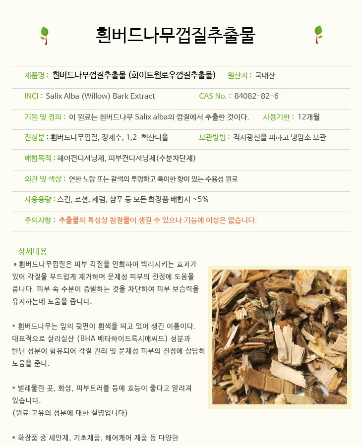 [더위치] 흰버드나무껍질추출물 100ml 화이트윌로우껍질추출물 Willow Bark Extract Salix Alba 84082-82-6