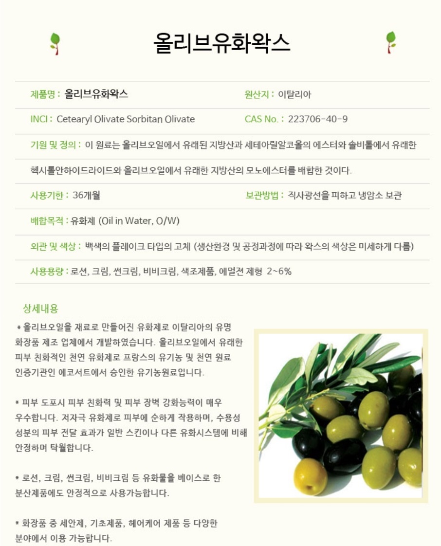 올리브유화왁스 250g 올리브 왁스 유기농 올리벰1000 Olive Wax