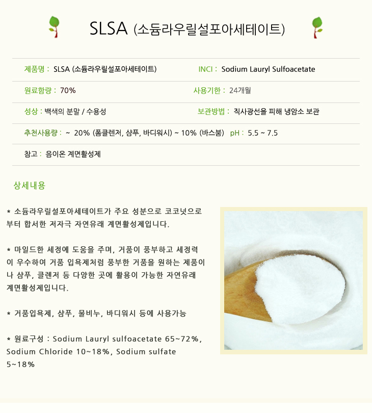 국내산 SLSA 1kg 소듐라우릴설포아세테이트