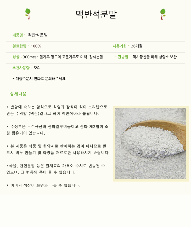 맥반석분말 1kg 맥반석가루