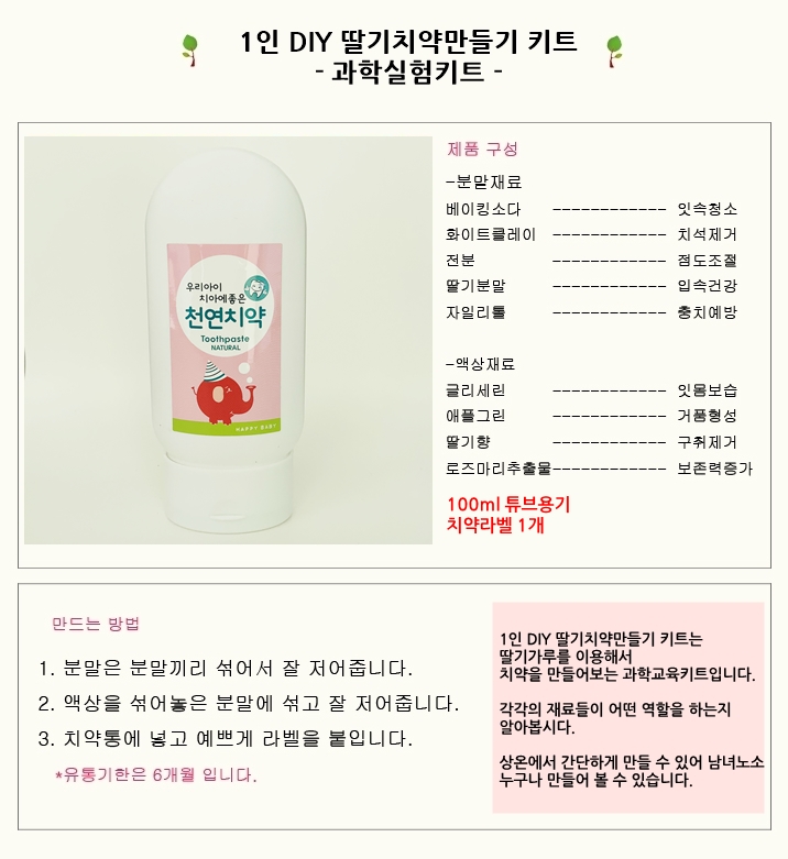 더위치 1인 DIY 딸기치약 만들기키트 비대면교육