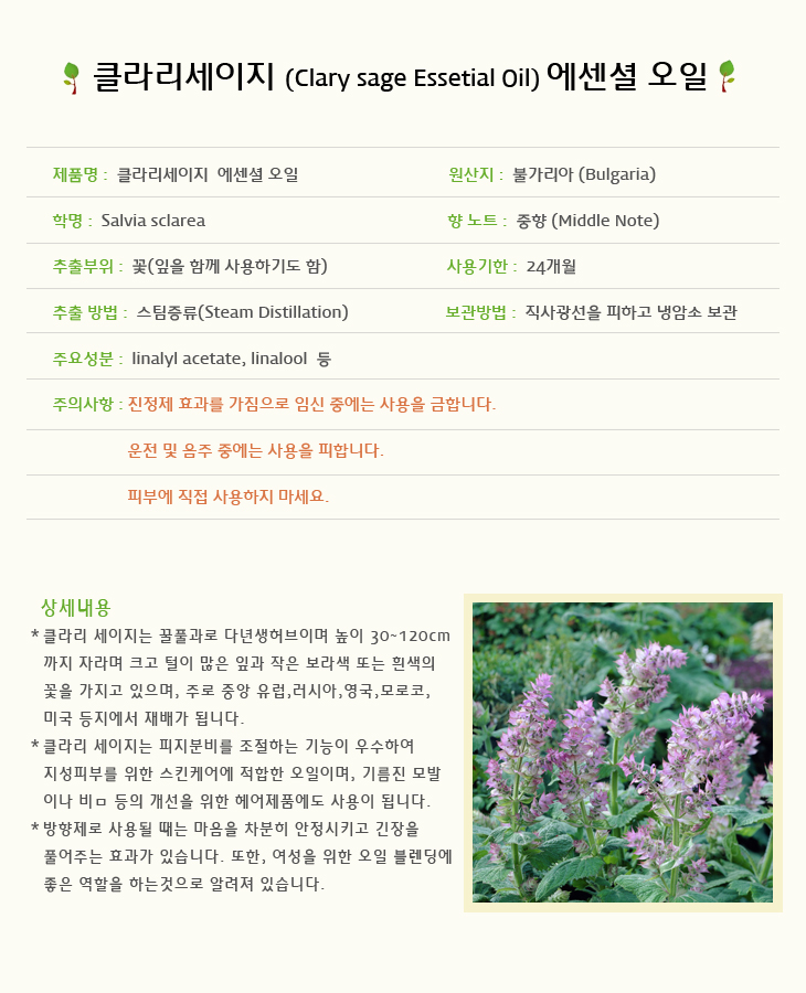클라리세이지 아로마오일 10ml 클레리꽃오일 Clary Sage Salvia Sclarea Flower Oil