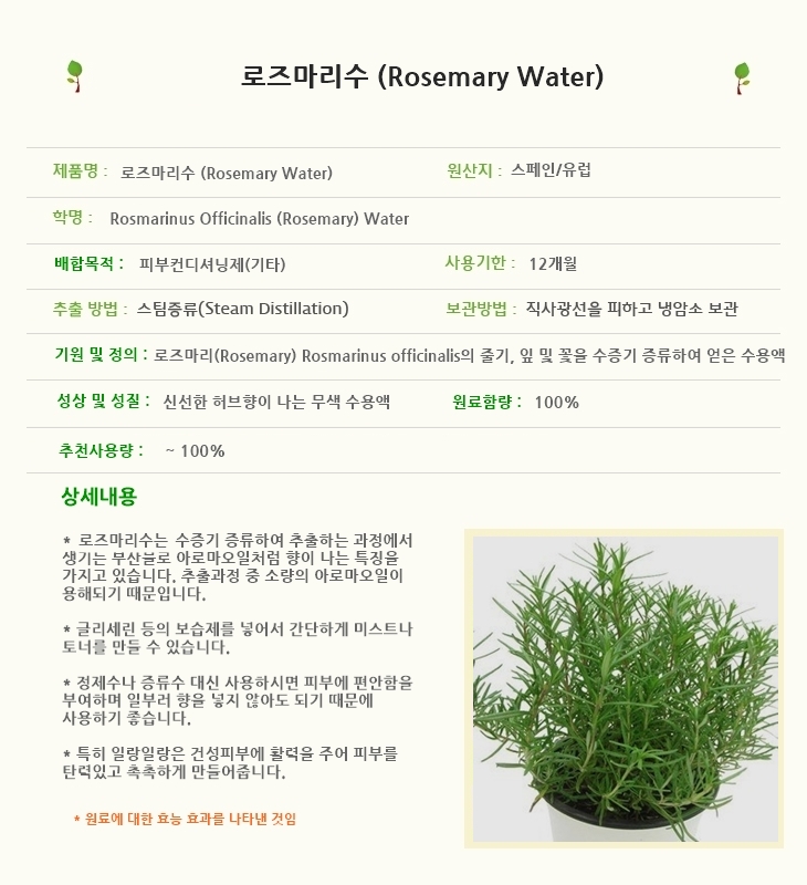 로즈마리워터 500ml 로즈마리수 Rosmarinus Officinalis Rosemary Water