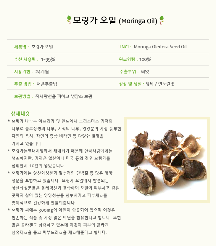 유기농 모링가오일 500ml 드럼스틱씨오일 Moringa Oleifera Seed Oil 저온추출