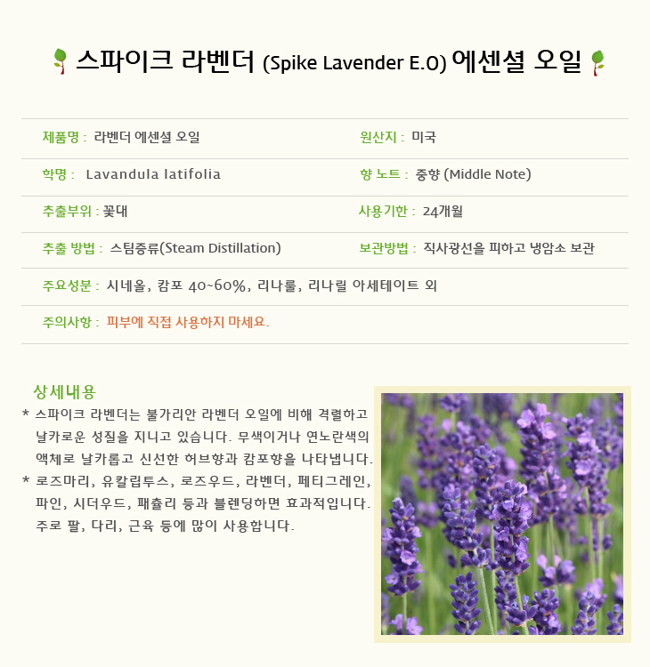 스파이크라벤더 아로마오일 100ml Spike Lavender Essential oil