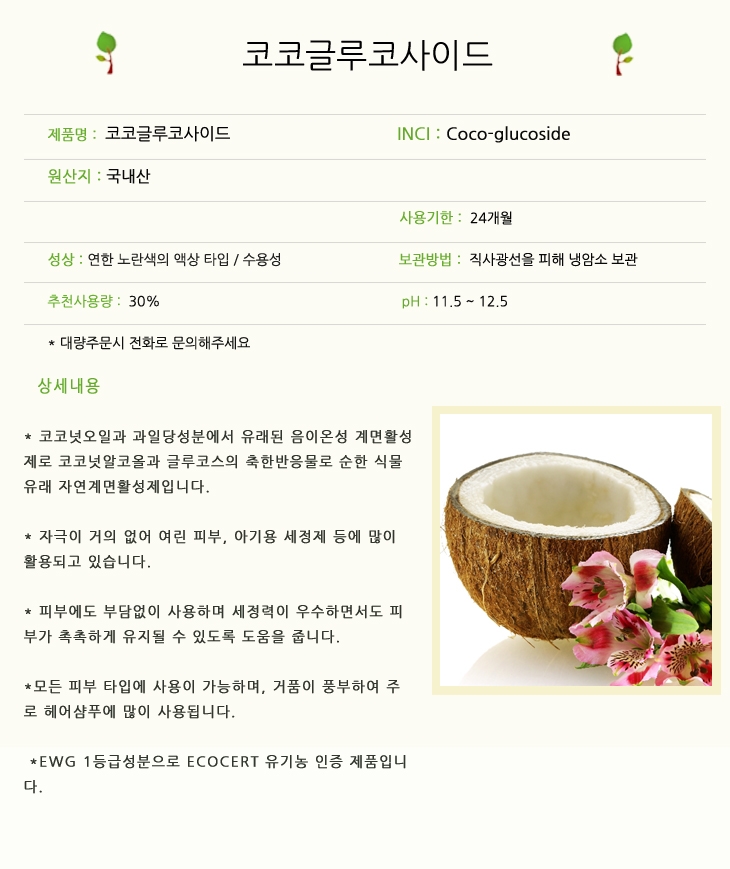 코코글루코사이드 100g 코코-글루코사이드 Coco-Glucoside