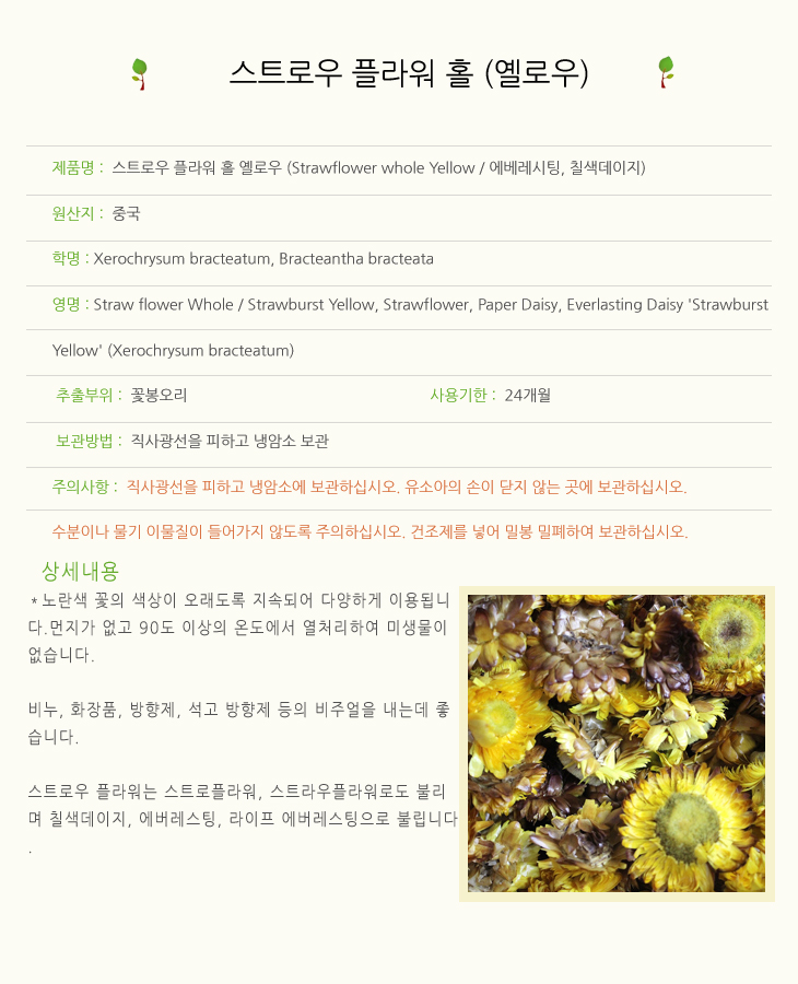 스트로우플라워홀 옐로우 1kg / 에버레스팅 칠색데이지 Strawflower whole