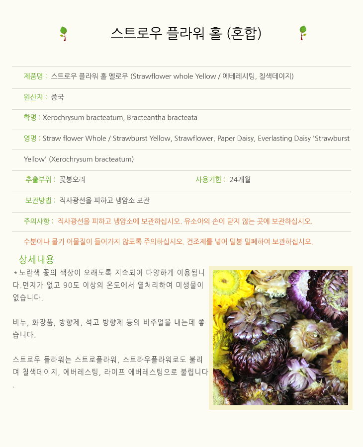 스트로우플라워홀 혼합 1kg / 에버레스팅 칠색데이지 Strawflower whole
